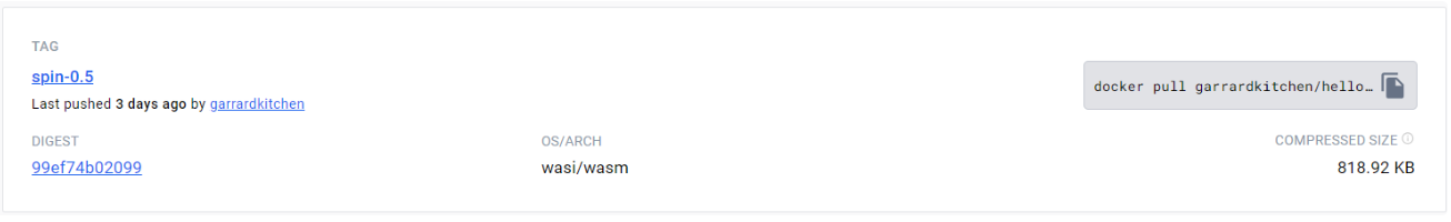 Image as shown in DockerHub, confirming OS & Architecture as WASI & WASM